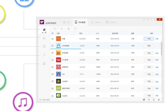 達派手機助手是史上最強大的win phone的手機助手。達派手機助手功能強大,支持多媒體導入導出,一鍵解鎖,云推送安裝應用,云端同步等功能,還有海量資源供用戶下載。達派手機助手是您個性化愛機的必備軟件。