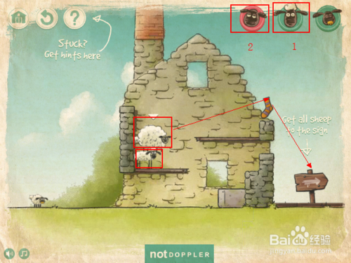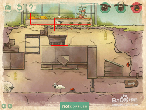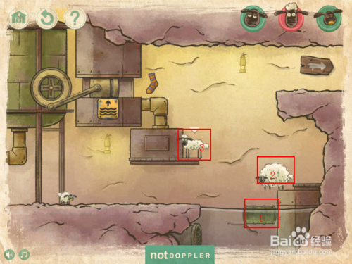 2、游戲一開始提供了三個指引關(guān)卡,對游戲的一些基本的操作技巧與過關(guān)目的進行了講解,實際上跟一代一樣,利用關(guān)卡中的各種道具、地形以及羊本身的特點,把它們從起點送到終點即可過關(guān)。