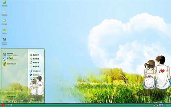 曾經(jīng)天藍(lán)藍(lán),曾經(jīng)草綠綠,曾經(jīng)的我們手牽手肩并肩,看著天邊的云彩幻化成心形模樣,這就是純純的愛吧,這款純純的愛xp主題非常清新自然,讓人在忙碌生活中舒展心靈