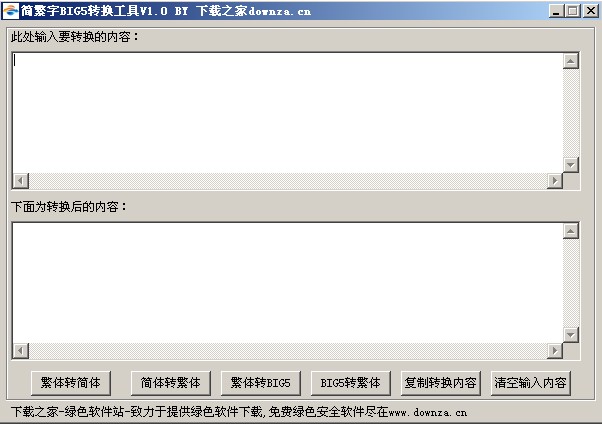 簡繁字BIG5轉(zhuǎn)換工具 V1.0綠色免費(fèi)版 簡繁字BIG5轉(zhuǎn)換工具V1.0 主要功能較簡單明了,作用于文字處理工具:簡繁字互轉(zhuǎn),BIG5碼與簡繁字之間的互轉(zhuǎn)起到了更直接簡單的一鍵相互之間的轉(zhuǎn)換,支持直接一鍵復(fù)制到其他應(yīng)用平臺(tái)進(jìn)行使用.