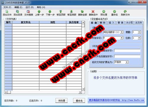 2345文件改名專家是2345軟件大全開發(fā)的一款功能強(qiáng)大的批量文件改名工具,可以把所有的文件快速方便的重命名;支持所有格式;支持預(yù)處理(即改名預(yù)覽);支持文件屬性更改。
