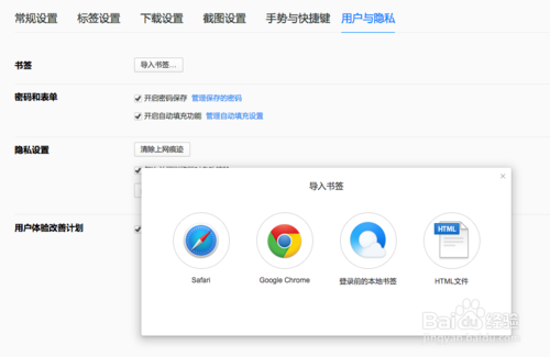 點擊上方的【導(dǎo)入書簽】,可以將電腦中安裝好的其他瀏覽器中的書簽網(wǎng)址導(dǎo)入到這個瀏覽器中
