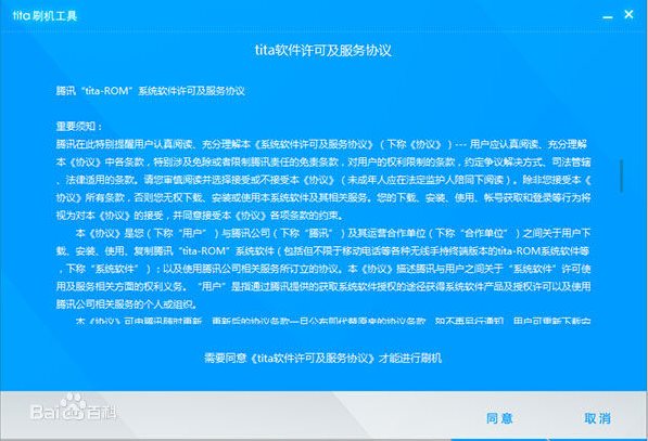3)點擊下一步,顯示如下界面,請仔細(xì)閱讀服務(wù)協(xié)議,同意后將開始刷機前的檢查。