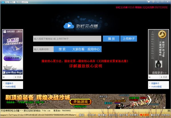 如果是迅雷或者電驢鏈接等磁力鏈,復(fù)制地址到彩虹云點播地址,點擊播放即可