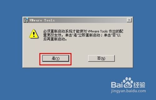 由于是重新安裝了虛擬機(jī)工具,涉及到已寫驅(qū)動的安裝,所以這個(gè)安裝需要重新啟動啟動。