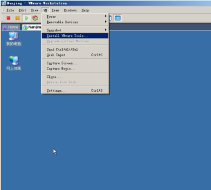 把你的VM開機(jī),正常進(jìn)入操作系統(tǒng)。選擇菜單“VM->Install VMware Tools”