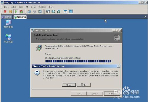 來解釋一下這個(gè)框的意思,VM要想更好的來使用真機(jī)的硬件配置,在這里建議把真機(jī)的“硬件加速”設(shè)置成“完全” ,在這里建議點(diǎn)擊“是”