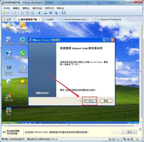 在虛擬機(jī)系統(tǒng)里面,點(diǎn)擊“Vmware Tools 安裝程序”窗口上的“下一步”