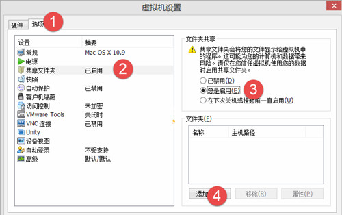 虛擬的Mac OS 與實(shí)機(jī)共享文件其實(shí)與其他的虛擬系統(tǒng)一樣,可以通過共享文件夾來實(shí)現(xiàn)。
