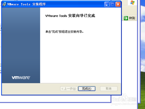 4 選擇好類型后就需要安裝了,點(diǎn)擊安裝后不一會便會完成整個(gè)安裝操作,此時(shí)我們可以點(diǎn)擊完成結(jié)束安裝過程。至此,VM的安裝過程已經(jīng)結(jié)束,但是仍沒有起到效果,需要我們重啟電腦才能生效。