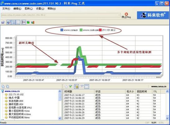 科來Ping工具是一個功能強大的連接性能查看工具,可同時支持多個IP的連接性測試,并提供圖形化的測試結(jié)果。