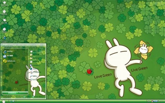 整個桌面背景鋪滿了代表著幸福的四葉草,而可愛的兔斯基在甜蜜的睡著覺,看來它的夢中也布滿了幸福的四葉草吧
