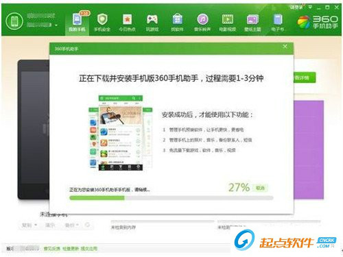 3、下載并安裝手機版360手機助手,也需要點時間。如果你覺得沒有需要的話,可以root成功后在手機上卸載。