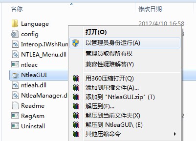 2.進(jìn)入Ntlea文件夾,右鍵單擊文件“NtleaGUI.exe”,選擇“以管理員身份運(yùn)行”,就可以執(zhí)行安裝了。