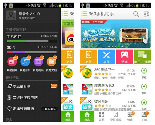 安裝360手機(jī)助手,瞬間下軟件,暢玩編輯精選游戲,隨時管理手機(jī)軟件,是您Android手機(jī)的必備首選!