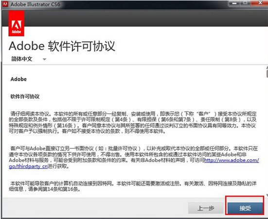 第五步:Adobe Illustrator Cs6【AI cs6】許可協(xié)議界面