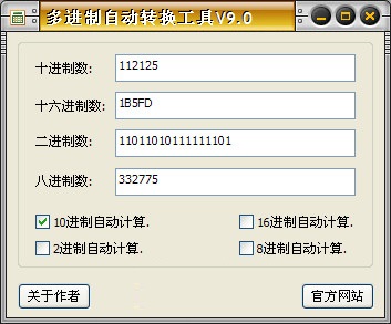 多進(jìn)制自動轉(zhuǎn)換工具是一個多種進(jìn)制間自動轉(zhuǎn)換的實用工具,只要在窗體中輸入其中一種進(jìn)制數(shù),即可10進(jìn)制、16進(jìn)制、2進(jìn)制、8進(jìn)制之間全自動相互轉(zhuǎn)換并即時顯示其他3種進(jìn)制數(shù)。