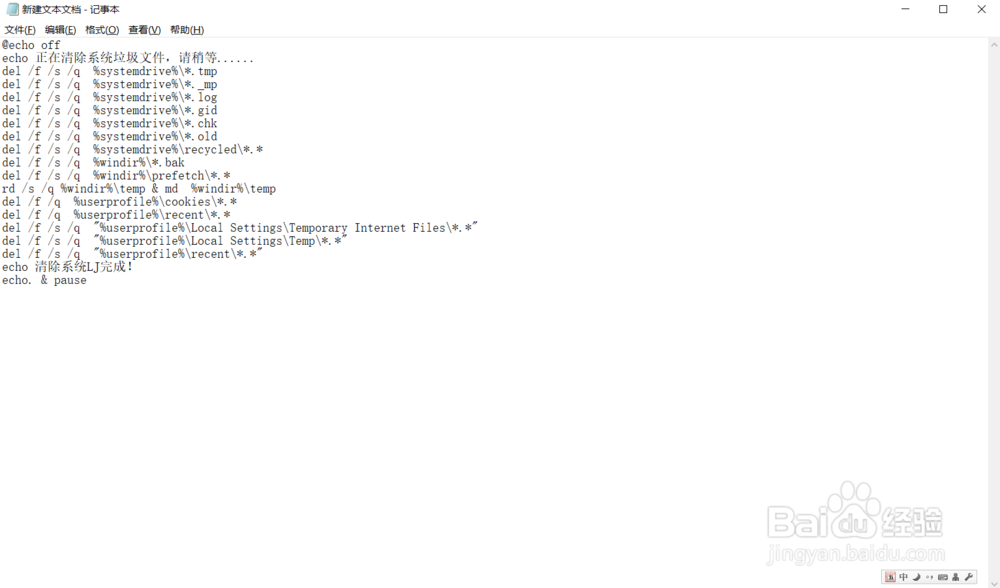 4、雙擊保存的“系統(tǒng)清理.bat”文件即可運行,清理結(jié)束后按任意鍵。