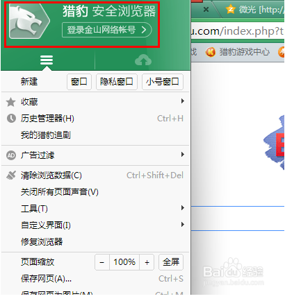 首先,打開(kāi)獵豹安全瀏覽器。如果尚未登陸帳號(hào),點(diǎn)擊左上角登陸。