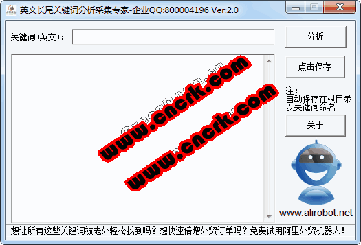 外貿出口英文長尾關鍵詞分析采集專家,是一款用于快速分析采集英文長尾關鍵詞的小軟件,終生免費。