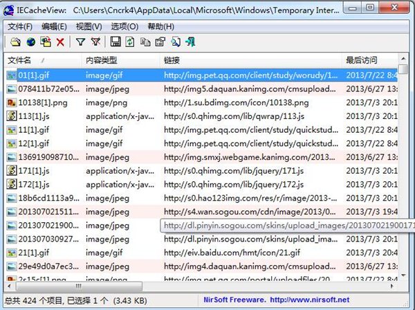 IECacheViewer 是一個管理IE緩存的(從互聯(lián)網(wǎng)上下載的臨時頁和文件) 程序,除了具有檢查的功能外,它還提供了檢索、復制和刪除緩存記錄的功能