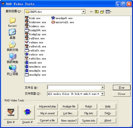 Rad Video Tools是Rad Game Tools公司的一系列視頻工具。它包含 Bink 和 Smack 兩種格式。其中Bink是目前Windows游戲中應(yīng)用最廣泛的動畫格式。它具有壓縮比高,畫質(zhì)好,對回放系統(tǒng)要求低等優(yōu)點。使用這套工具,您可方便的將各種格式的視頻文件,甚至靜態(tài)的圖片與Bink和Smack之間轉(zhuǎn)換。當(dāng)然,您也可以直接通過它來播放游戲中相應(yīng)格式的動畫文件。您還可將自己喜愛的影片制成為可執(zhí)行的exe文件。