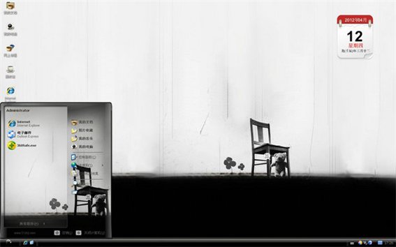 在不知道搭配什么顏色的時候,黑白灰可以是主色調(diào),這款寂寞小熊xp主題就非常特別的采用了黑白色,在一個小椅子旁邊靠著一只小小熊,旁邊還有日歷,提醒著你每天的行程哦