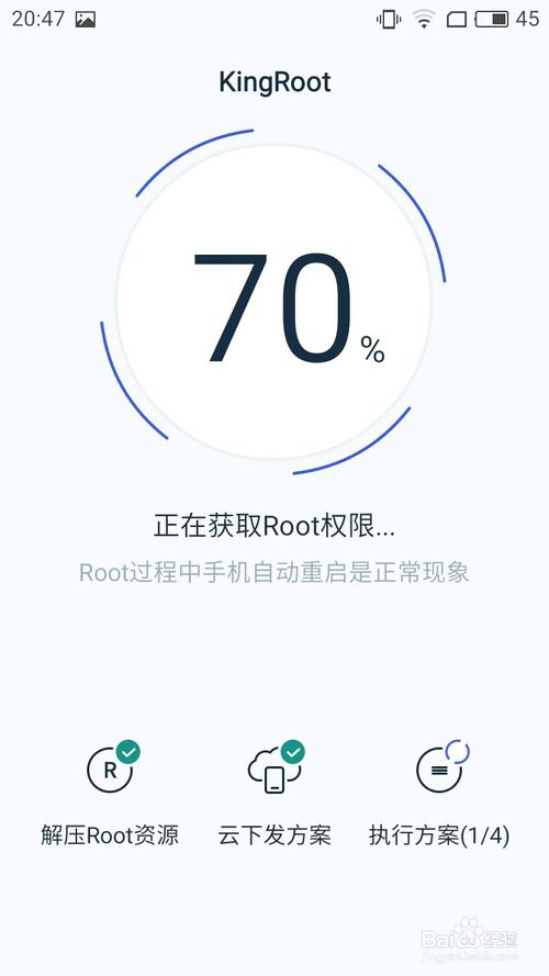 1、打開root應用,先完成手機root權限獲取。部分機型可能有root限制,無法獲取,軟件可檢測出來??蓃oot的機型,需保持網(wǎng)絡暢通。若中途失敗,可多次重試。
