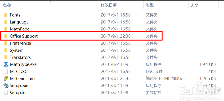 首先我們需要找到MathType安裝目錄下的Office Support文件夾,如下圖所示。