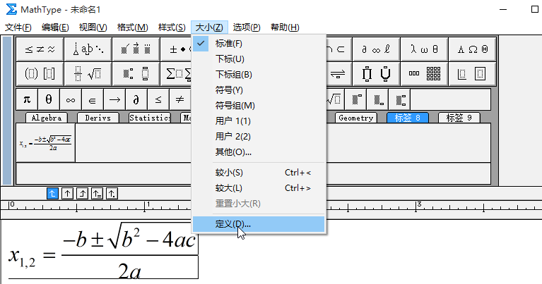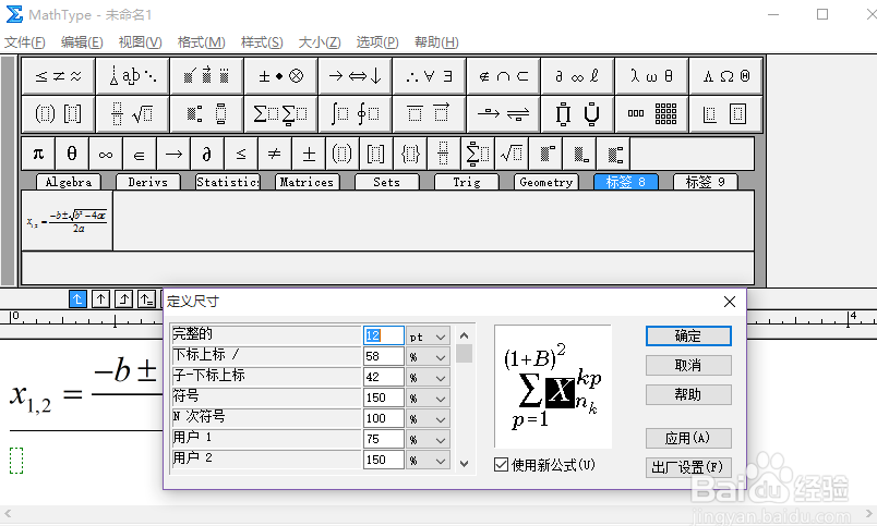 設(shè)置MathType公式的大小尺寸,通過設(shè)置公式大小尺寸來適應(yīng)不同的文檔。