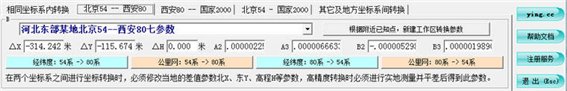 可在北京54、西安80、國(guó)家2000、地方坐標(biāo)系間進(jìn)行公里網(wǎng)坐標(biāo)轉(zhuǎn)換;可對(duì)跨兩個(gè)分帶的坐標(biāo)點(diǎn)進(jìn)行跨帶坐標(biāo)轉(zhuǎn)換;可對(duì)六度帶、三度帶、一點(diǎn)五度帶的坐標(biāo)點(diǎn)進(jìn)行相互轉(zhuǎn)換;并能進(jìn)行手持GPS參數(shù)設(shè)置。采用模糊技術(shù)提取、處理各項(xiàng)數(shù)據(jù),輸出直觀的轉(zhuǎn)換成果;并能方便存儲(chǔ)、提取坐標(biāo)數(shù)據(jù)。