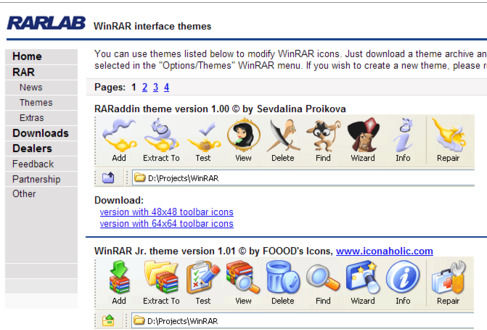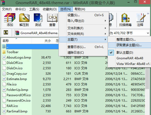 首先,打開WinRAR,點(diǎn)擊菜單“選項(xiàng)”-“主題”-“獲取更多主題...”。
