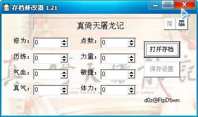 真倚天屠龍記修改器支持真倚天屠龍記繁體中文版,可隨意修改游戲的存檔。 主要功能: 修改修為、點數(shù)、歷練、力量、氣血、敏捷、真氣和體力!