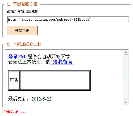 豆瓣電臺(tái)音樂(lè)下載工具 V2.0.2綠色免費(fèi)版 豆瓣電臺(tái)下載工具是一款用于下載豆瓣電臺(tái)上音樂(lè)的下載工具軟件。