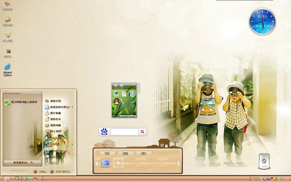 這款主題很懷舊,與其說是褪色的記憶,不如說是兒時(shí)珍貴的回憶,這款主題的桌面背景是兩個(gè)可愛的小孩拿著相機(jī)拍照的模樣,殊不知他們現(xiàn)在這么可愛的模樣就已經(jīng)是一道美麗的風(fēng)景了~
