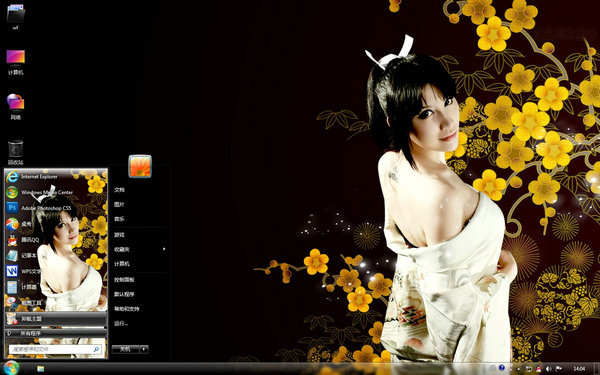 這款主題的電腦桌面非常簡單,是一個穿著和服的mm回眸一笑的模樣,她的身后是淡黃色的梅花在黑暗中綻放,這么美麗的桌面背景是不是驚艷到你了呢?喜歡的話趕緊抱回家吧!