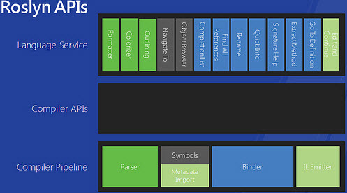 傳統(tǒng)上,編譯器的黑盒子 - 源代碼,在一端,和對(duì)象文件或程序集出來(lái)的另一端。Roslyn的變化,通過(guò)開放的VB和C#編譯器的模型。編譯器提供了API允許工具和最終用戶的豐富的信息,編譯器對(duì)代碼共享。微軟的“Roslyn”CTP預(yù)覽版新的語(yǔ)言代碼生成,分析和重構(gòu),并為即將到來(lái)的腳本支持和互動(dòng)使用C#和Visual Basic中的對(duì)象模型。