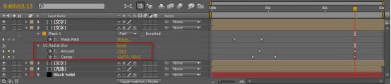 圖12(12) 選中復(fù)制出的另一個(gè)圖層,將其Mask刪除,同樣添加CCRadialBlur特效,設(shè)置Type為StraightZoom,設(shè)置Amount的值為202,設(shè)置Quality的值為100,Center的值為404.7,512。