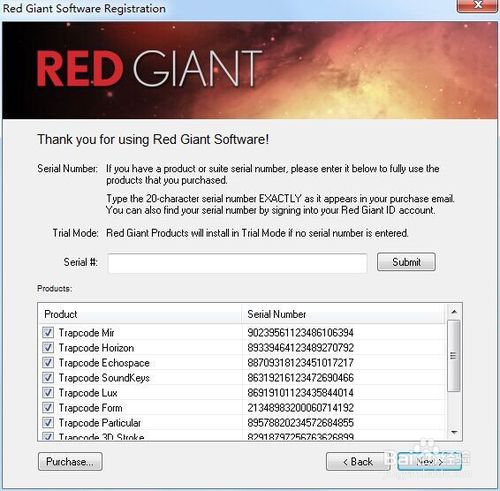 安裝Trapcode插件,注意要勾選里面需要安裝的插件,并一一填上注冊(cè)碼