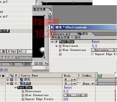 并滾光comp作為圖層導(dǎo)入。并又復(fù)制了一層。然后,對(duì)下面的層,添加了fast blur效果。見(jiàn)圖: