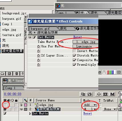 將那幅文字邊緣圖edge.jpg導(dǎo)入其中。再將滾光最后效果導(dǎo)入,放在edge.jpg下面。