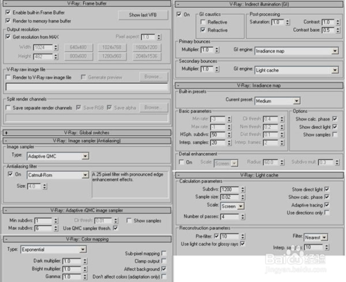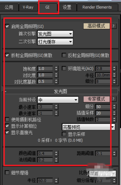 渲染面板的設(shè)置。(該設(shè)置也是最終渲染設(shè)置,前期渲染期間一應(yīng)設(shè)置相應(yīng)調(diào)低)