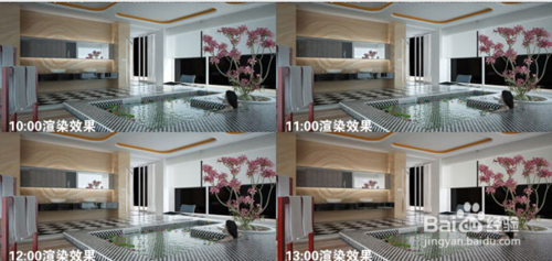 VRay分時(shí)渲染詳解了解vray的朋友應(yīng)該知道,vraysun+vraysky通過(guò)改變燈光的角度方位就可以非常容易的創(chuàng)建出不同時(shí)段的效果,本教程并沒(méi)有運(yùn)用這套燈光系統(tǒng)來(lái)創(chuàng)建光照效果,而是使用vraylight的球形(sphere)燈光類(lèi)型來(lái)創(chuàng)建主光源的。當(dāng)然,這里并不是要講述vryalight與vraysun之間的區(qū)別,或者可以說(shuō),當(dāng)你了解了下面要講述的教程后,你也可以根據(jù)這個(gè)原理使用在vraysun的燈光體系上(可以說(shuō),將本教程的知識(shí)點(diǎn)用在vraysun上,效率將更高),主要是希望通過(guò)這樣一個(gè)教程讓大家能夠更準(zhǔn)確、高效的獲得不同時(shí)段的效果,并以此可以制作出時(shí)間流逝的燈光動(dòng)畫(huà)。本教程中的燈光路徑動(dòng)畫(huà)創(chuàng)建思路屬原創(chuàng),方法技巧如有相同,純屬巧合,下面我們先來(lái)看看這個(gè)教程的各時(shí)段的最終效果(以下均為渲染結(jié)果,并未后期處理):