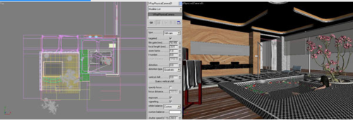 創(chuàng)建相機(jī):相機(jī)使用的是vray的物理相機(jī),因?yàn)槠鋬?nèi)的相關(guān)參數(shù)能夠更好的調(diào)整室內(nèi)整體光照效果。然后通過(guò)室內(nèi)攝像機(jī)主視角確定太陽(yáng)的方位。