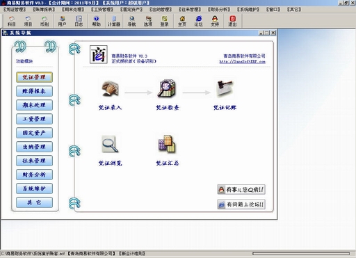 商易財務(wù)軟件免費版完全適合最新的財務(wù)會計制度。商易財務(wù)軟件免費版高度集成憑證管理、賬簿報表、期末處理、工資管理、固定資產(chǎn)、出納管理、往來管理、財務(wù)分析、系統(tǒng)維護等模塊,功能全面,采用導(dǎo)航圖功能,商易財務(wù)軟件免費版兼容Microsoft Excel,同時設(shè)置了多幣別、多核算項目,各項技術(shù)指標及功能可完全滿足企業(yè)級用戶的實際應(yīng)用需求。