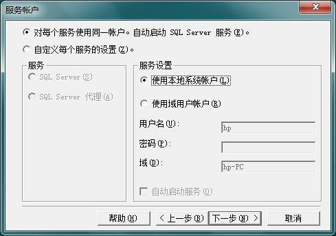 12.對(duì)于個(gè)人而言,如果不是在網(wǎng)絡(luò)環(huán)境下,而僅僅是在單獨(dú)的PC上使用,應(yīng)選擇【使用本地系統(tǒng)賬戶(hù)】,單擊【下一步】,開(kāi)始復(fù)制文件。