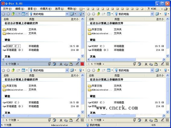 Q-Dir 是一款非常獨特的資源管理器,當(dāng)然比起TC來說還是弱了點,但是術(shù)業(yè)有專攻,它特別適用于頻繁在各個目錄間跳躍復(fù)制粘貼的情況,因為,它有 4 個窗口!每個窗口都可以方便的切換目錄,以不同顏色區(qū)分不同類型的文件,各窗口之間可以方便的拖放操作互相的文件。