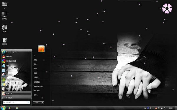 這款牽手的約定win7主題的桌面背景是黑白色調(diào)的,在木質(zhì)的靠椅上,熱戀中的男女十指相互交纏的握在一起,雖然這只是簡單的牽手,但是也包含著深沉的含義,牽手的約定就是一輩子在一起,相互扶持,相互依偎的約定,只要彼此牽手,就要一直走下去哦