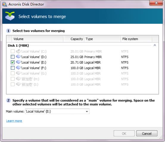 出現(xiàn)上圖界面后,勾選是和D盤還是F盤合并,這里F盤,然后選擇OK.