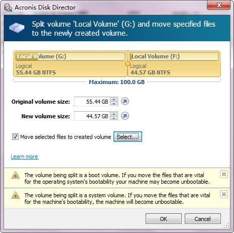 出現(xiàn)上圖界面。Original volume size和new volume是拆分成的兩個分區(qū)的大小,其中Original volume size是原始分區(qū),下面Move selected files to created volume是分你選擇把那些文件夾放進(jìn)新分區(qū)里,如果原始分區(qū)里文件太多,拆分之后根本放不下,這時就要選擇幾個大點(diǎn)的文件夾放進(jìn)新分區(qū)里。操作完后OK。這時拆分就完成了。